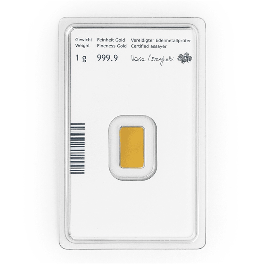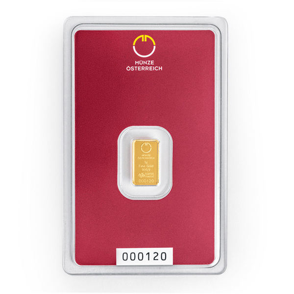 Münze Österreich is the only official mint in Austria. Its history dates back 800 years, during which time it has minted coins such as groschen, ducats, guilders, kreuzers, and euros. In addition to various coins, the Austrian mint also offers gold investment bars, such as this one, which weighs 1 gram.