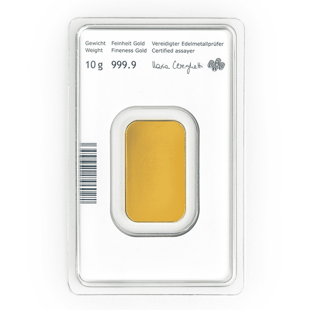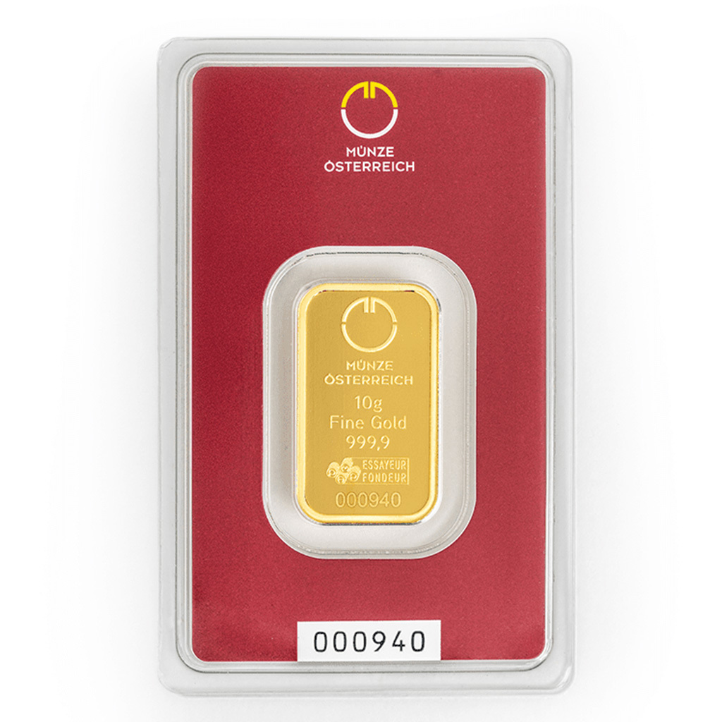 Münze Österreich is the only official mint in Austria. Its history dates back 800 years, during which time it has minted coins such as groschen, ducats, guilders, kreuzers, and euros. In addition to various coins, the Austrian mint also offers gold investment bars, such as this one, which weighs 10 grams.