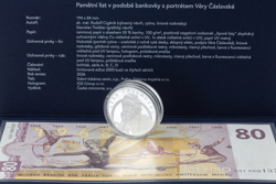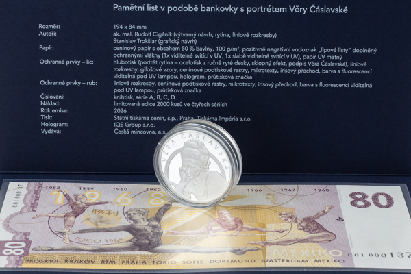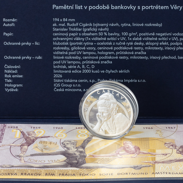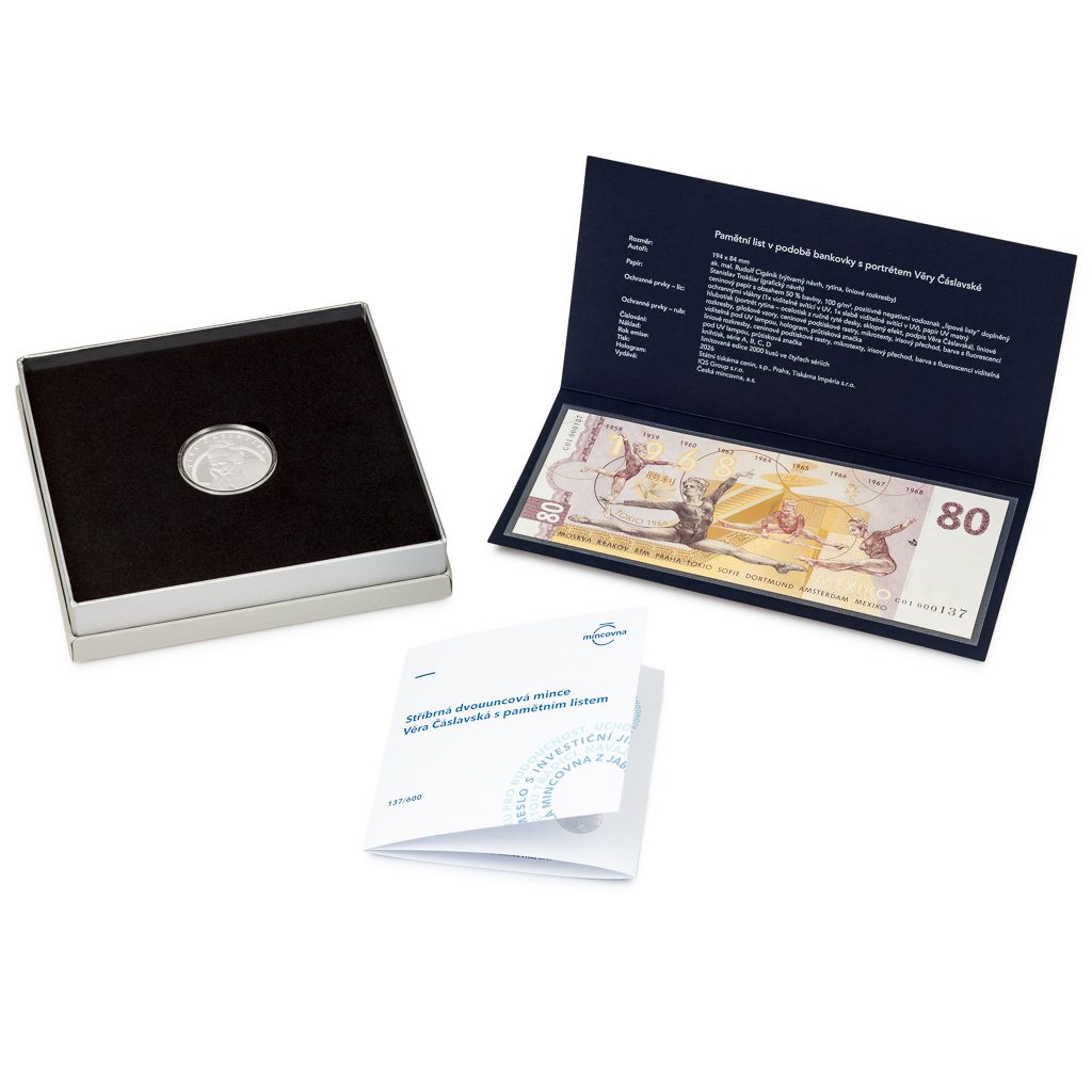Silver 2oz coin Věra Čáslavská with commemorative note proof