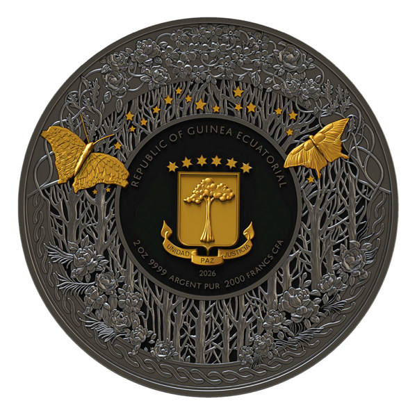 The reverse side of the coin depicts Freya in full armor, setting off for battle in her cat-drawn chariot as it races across the sky. The central motif, which is gilded, is surrounded by rich ornamentation inspired by the art of the ancient Vikings. Decorative motifs can also be found on the obverse side. Since the coin is issued under a foreign license from Equatorial Guinea, the obverse side also bears its national coat of arms, the nominal value of 2,000 FRANCS CFA, and the year of issue 2026.