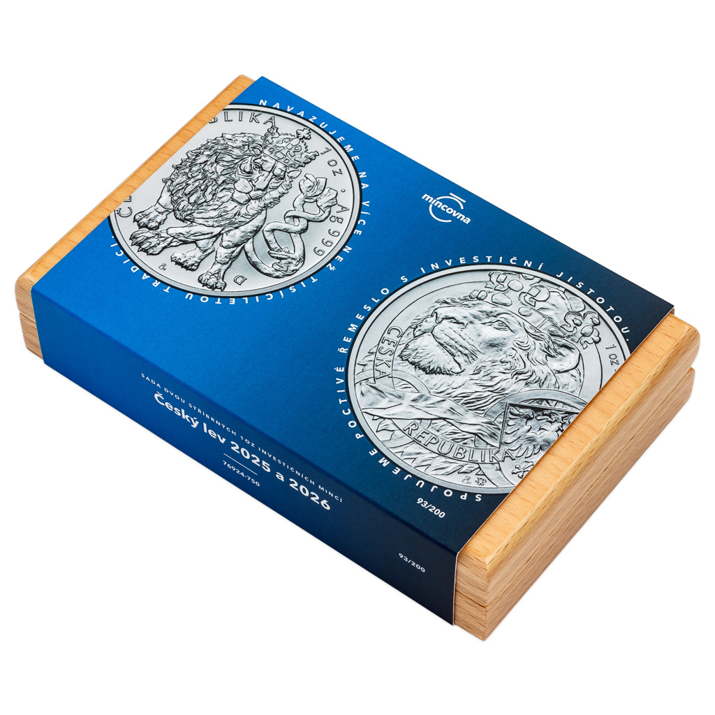 Séria dvoch 1oz strieborných investičných mincí Český lev 2025 a 2026 stand