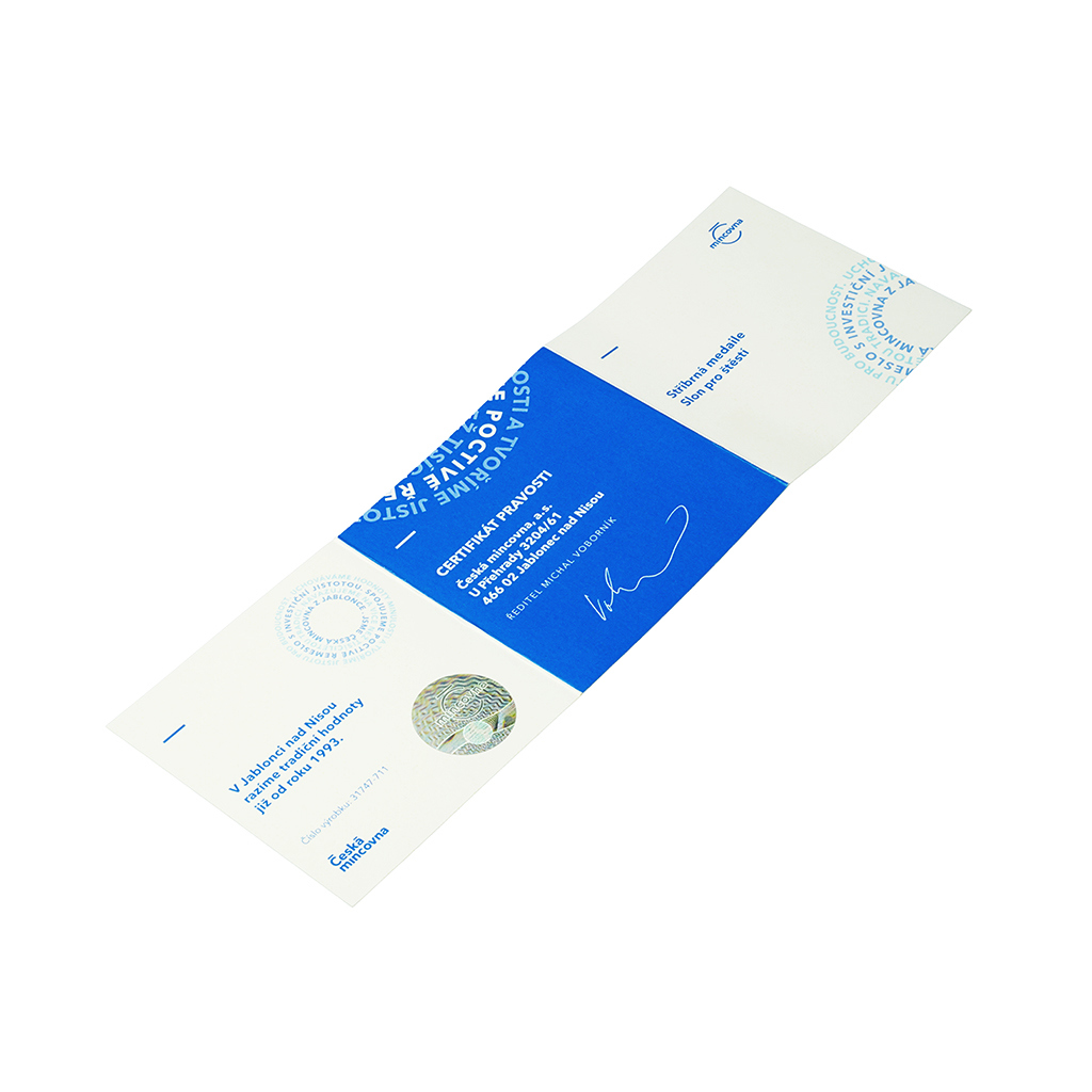 Strieborná medaila je uložená do elegantnej škatuľky.