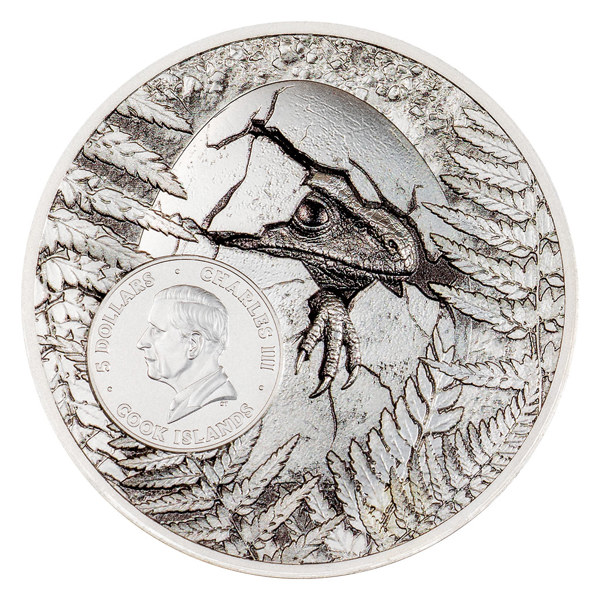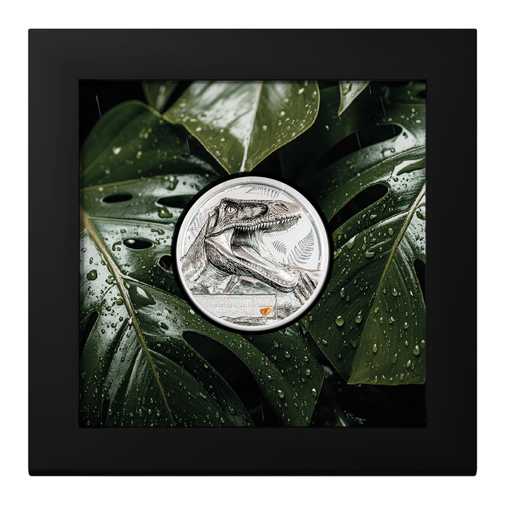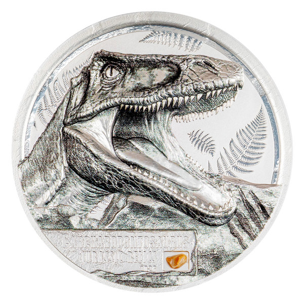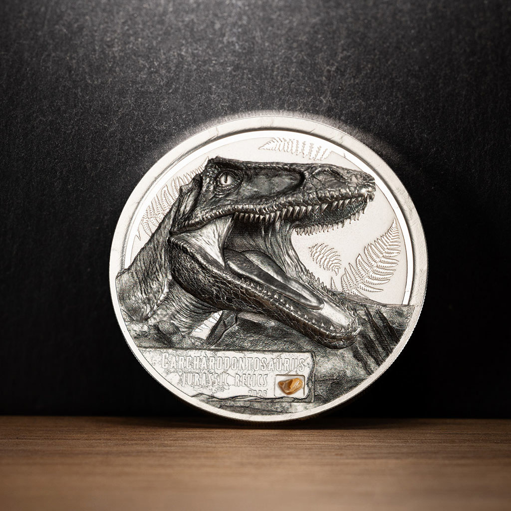 Strieborná minca 1 Oz Jurské relikvie: Carcharodontosaurus