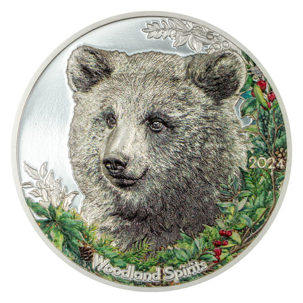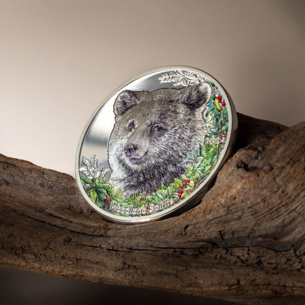 Stříbrná mince s motivem medvěda gobijského je součástí cyklu Duchové lesa od společnosti CIT Coin Invest.