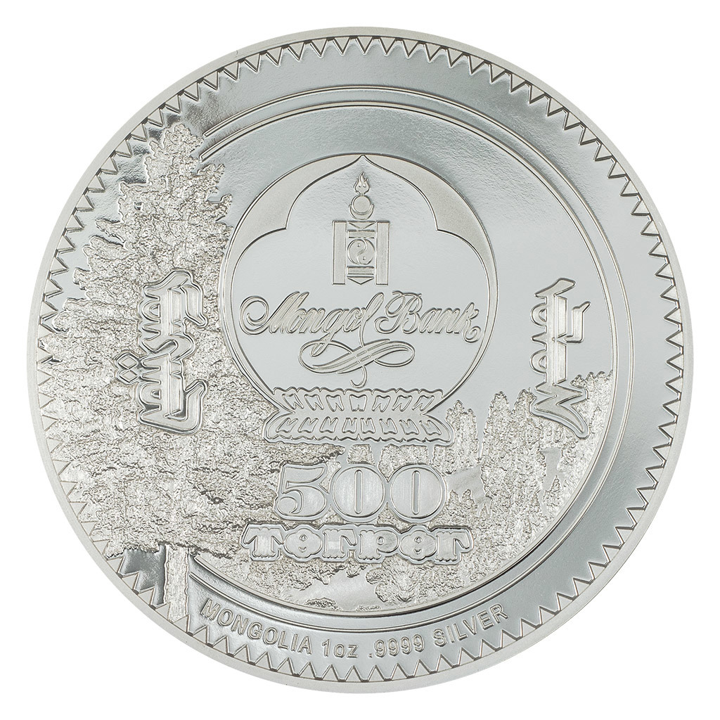 Reverzní straně mince vévodí kolorované vyobrazení dobrosrdečně působícího medvěda ukrytého v lesním podrostu. Do averzní strany, která předkládá divoký les, pak jsou zakomponovány atributy emitenta mince – státní znak Mongolska a nominální hodnota 500 TOGROG.