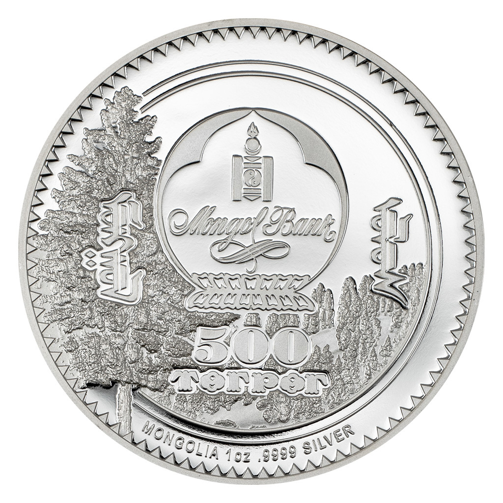 Reverzní straně mince vévodí kolorované vyobrazení vesele působící vydry ukryté v lesním podrostu. Do averzní strany, která předkládá divoký les, pak jsou zakomponovány atributy emitenta mince – státní znak Mongolska a nominální hodnota 500 TOGROG.
