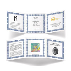 Runa z ryzího stříbra je opatřena patinou a barvou, kterou odhalí jenom UV světlo. Na každém exempláři najdete ještě individuální číslo a mincovní značku společnosti Germania Mint.